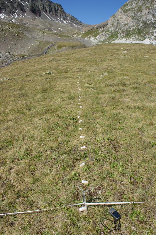 Von der Krummsegge dominierter Pflanzenbestand in den Schweizer Alpen. Durch systematische Beprobung und molekulare Fingerprints werden die Grösse von Klonen und indirekt ihr Alter analysiert . Quelle: (Foto: L. de Witte) (idw)