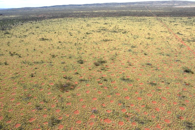 Aus der Vogelperspektive wird ersichtlich, dass sich die Feenkreise homogen über die Landschaft vert Quelle: Kevin Sanders (idw)