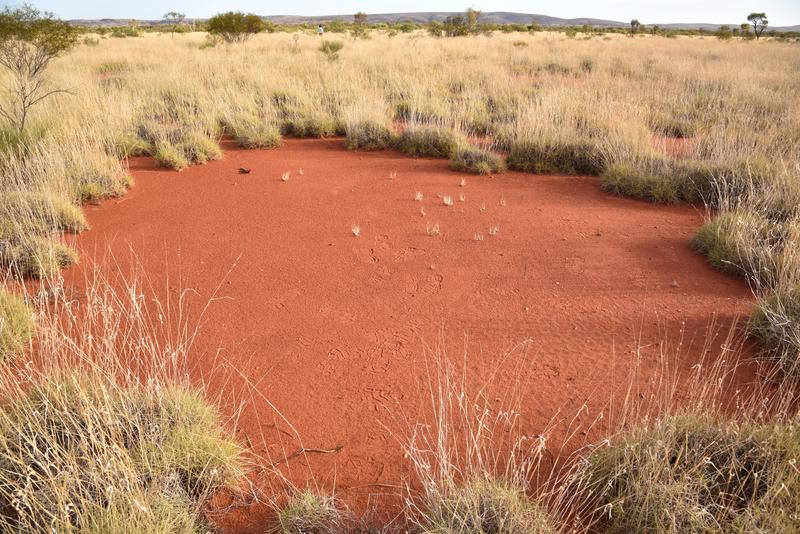 Ein großer Feenkreis mit einer harten Bodenschicht, die das Pflanzenwachstum verhindert. Australisch Quelle: Dr. Stephan Getzin (idw)