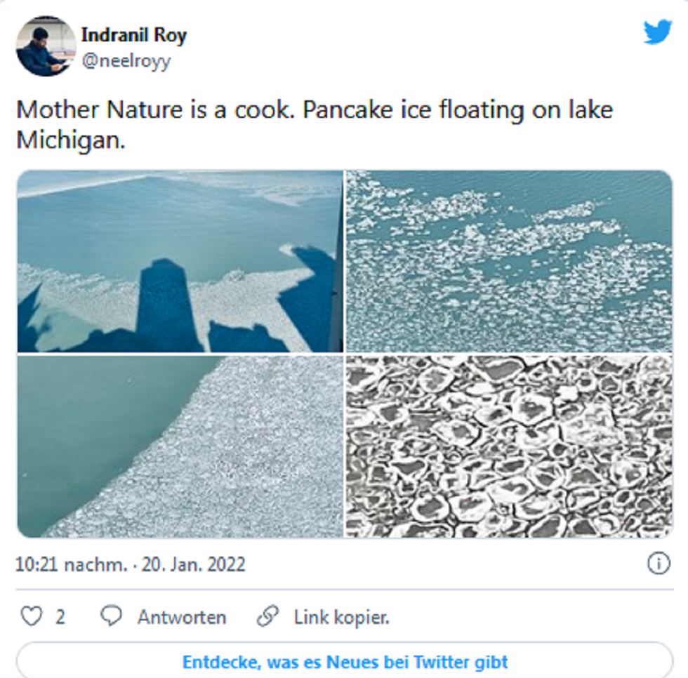 Zurück zu Seltenes Winter-Phänomen: Lake Michigan bedeckt von „Pfannkucheneis“