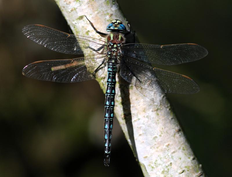 Der Frühe Schilfjäger (Brachytron pratense), eine der in der Studie untersuchten Arten, ist eine an stehende Gewässer angepasste Großlibellenart aus der Familie der Edellibellen. Quelle: Copyright: Christian Hof, BiK-F (idw)