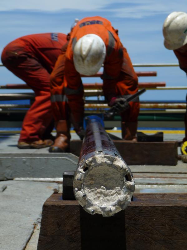Bohrkern mit Korallenschlamm Quelle: Foto: ECORD/ESO (idw)