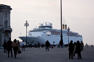 Kreuzfahrtschiff im Hafen von Triest. Bild: Wolfgang Weitlaner