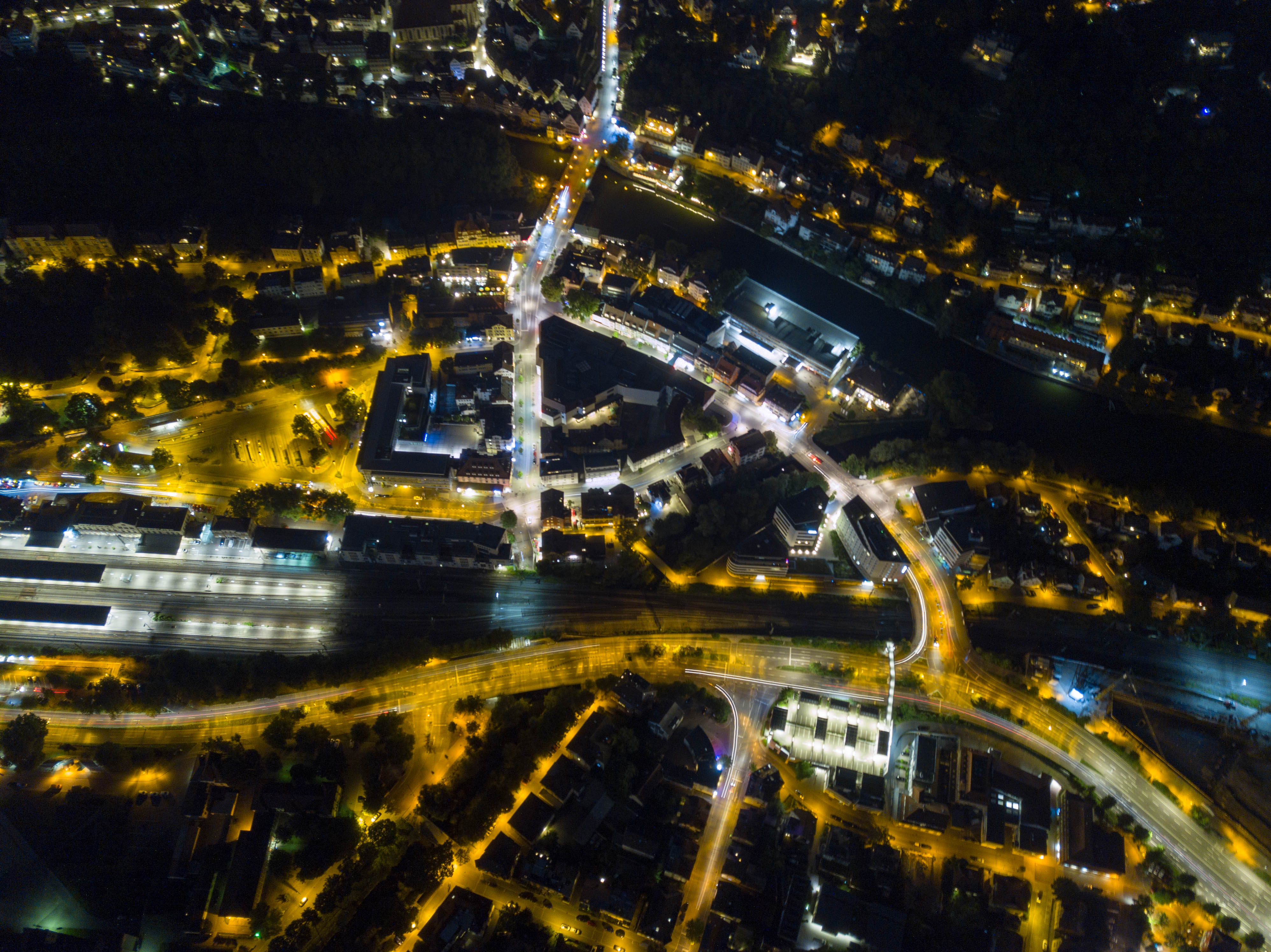 Die neuen, weißen LED-Straßenlaternen tauchen Straßenzüge in ein ganz anderes Licht als Natriumdampflampen (Tübingen)