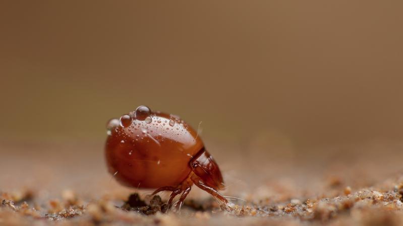 Hornmilbe der Familie Euphthiracaridae. Diese Milben reisen lebend im Darm von Schnecken. Quelle: Andy Murray (idw)