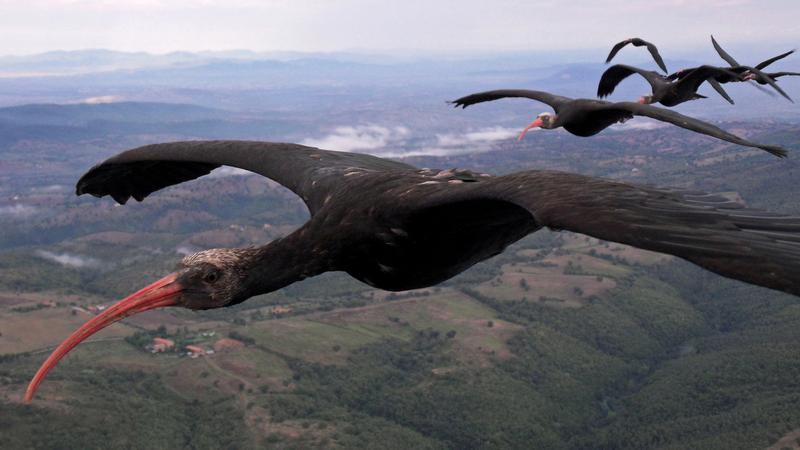 Waldrappe im Formationsflug Quelle: Foto: SNSB-ZSM (idw)