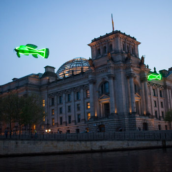 Fliegende Fische über Berlin. Bild: David Biene / WWF