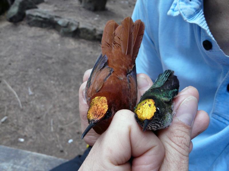 Juan Fernandez-Kolibris, männl. (li) und weiblich Quelle: Ingo Hahn (idw)