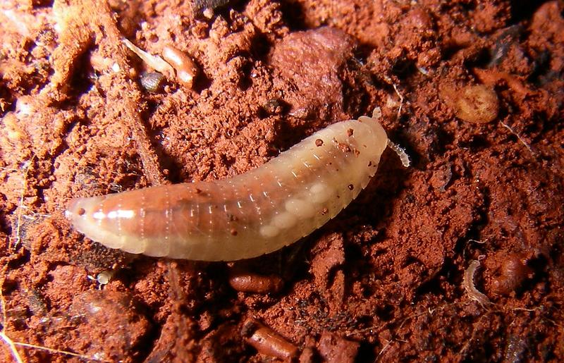 Höhlen-Urtausendfüßer: Die Tiere sind aufgrund der Reduktion ihres Kalkpanzers fast durchsichtig. Deutlich sind hier die Eier zu erkennen. Das schützende Kalkskelett wurde im Verlauf der Evolution vermutlich aufgrund der Abwesenheit von Fressfeinden in der Höhle fast vollständig reduziert. Die Tiere sind dadurch extrem zerbrechlich. Quelle: Foto: Universität Lavras in Minas Gerais (UFLA), (idw)