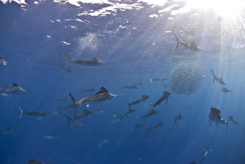Segelfische machen im offenen Ozean vor der Küste Mexikos Jagd auf Sardinenschwärme. Quelle: Foto: Rodrigo Friscione (idw)