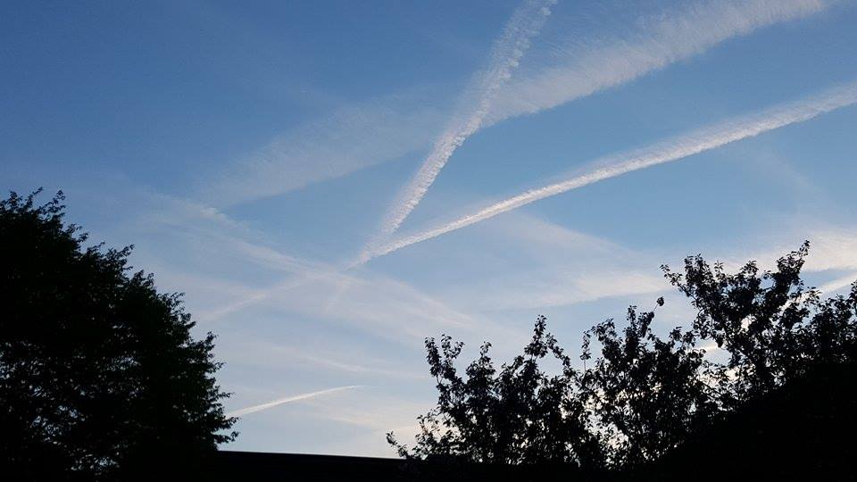Chemtrails (persistente Kondensstreifen) am Himmel über Rostock im Mai 2015
