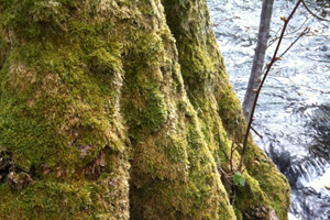Mit Moos bewachsener Baumstamm: Ein internationales Forschungsteam hat den Reaktionsweg entschlüsselt, mit dem die kleine Pflanze ihre äußere Schutzschicht ausbildet.