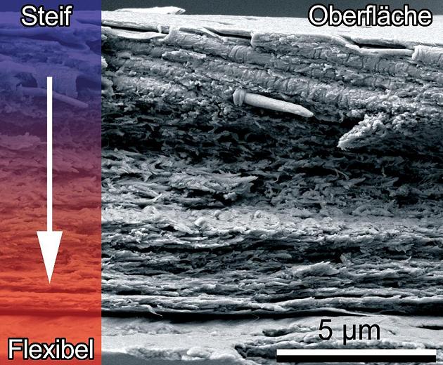 Die Abbildung zeigt die Kraftverteilung bei einem Material mit und ohne Gradient bei gleichem Druck. Bild: CAU, Foto: Marie Klein-Christin Klein