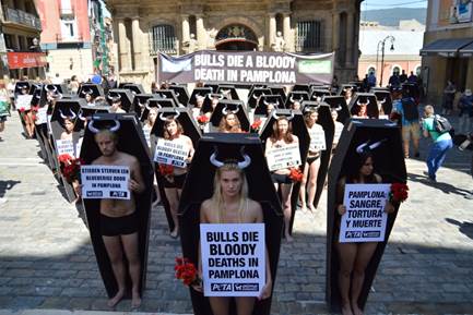 Bild: Heutige PETA-Aktion in Pamplona / © PETA
