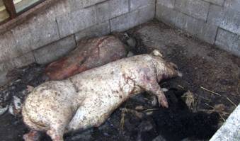 Grube mit toten Hunden und Schweinen. Bild: PETA