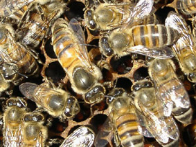 Eine Bienenkönigin mit Arbeiterinnen. Foto: Stefan Härtel, Martin-Luther-Universität Halle-Wittenberg