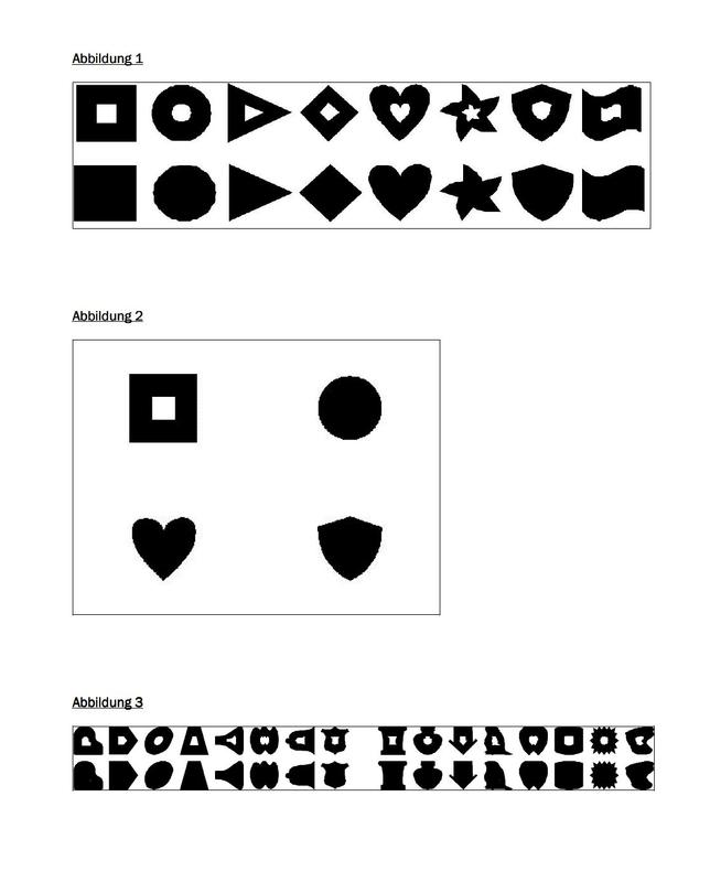 Abb. 1-3 (FBN): Abb. 1: Im Training verwendete Symbole die zwei verschiedenen Kategorien folgten. ObereKategorie 1 Symbole mit weißem Zentrum, belohnt. Untere Reihe: Kategorie 2 , schwarz gefüllte Symbole, unbelohnt. Abb. 2: Beispiel eines 4-fach Diskriminierungsproblems mit einem belohnten und drei unbelohnten Symbolen. Abb. 3: Im Transfer-Test eingesetzte Symbole, aufgeteilt in zwei aufeinanderfolgende Blöcke. Obere Reihe: Kategorie 1, belohnt. Untere Reihe: Kategorie 2, unbelohnt. Quelle: (idw)