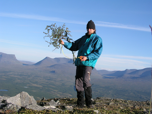 Zwergbirken der schwedischen Tundra nördlich des Polarkreises werden vermessen und für die Analysen ins Labor gebracht. Quelle: Foto: Martin Hallinger (idw)