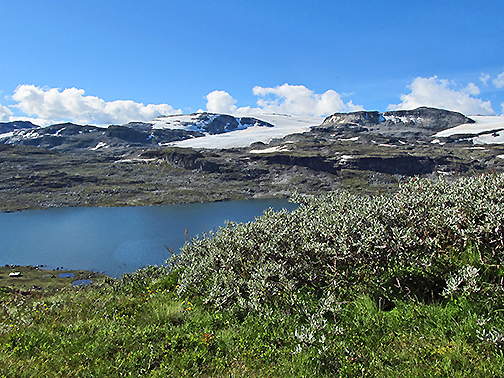 Weidengebüsche in der Tundra vor dem Hardangerjökulen in Norwegen Quelle: Foto: Allan Buras (idw)