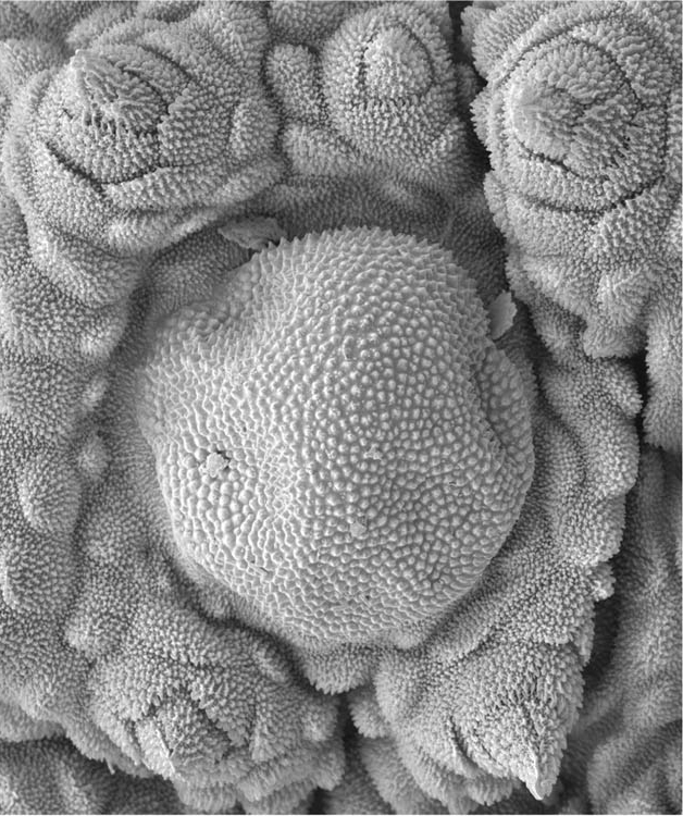 Rasterelektronenmikroskop-Aufnahme einer Struktur mit bisher unbekannter Funktion von der Körperoberfläche der neuen Stummelfüßer-Art. Quelle: © Ivo de Sena Oliveira und Georg Mayer, Universität Leipzig. (idw)