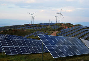 Solarzellen und Windräder: Quellen für Wasserstoffproduktion.