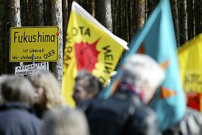 Am Tag der Reaktorkatastrophe von Fukushima (Japan) protestierten 500 Wendländer am und auf dem Gelände des geplanten Endlagers in Gorleben. Unterstützt wurden die Demonstranten von rund 30 Treckern. Die AKW-Gegner überwanden Sperrzäune und besetzten vorübergehend Gelände und Gebäude. Bild: Andreas Conradt / PubliXviewinG