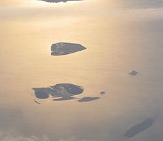 Luftaufnahme des Nationalparks, mit den Inseln Neuwerk (oben), Scharhörn, Nigehörn (unten) und Teilen des Scharhörner und Neuwerker Watts (rechts und unten). Bild: Vincent van Zeijst / de.wikipedia.org