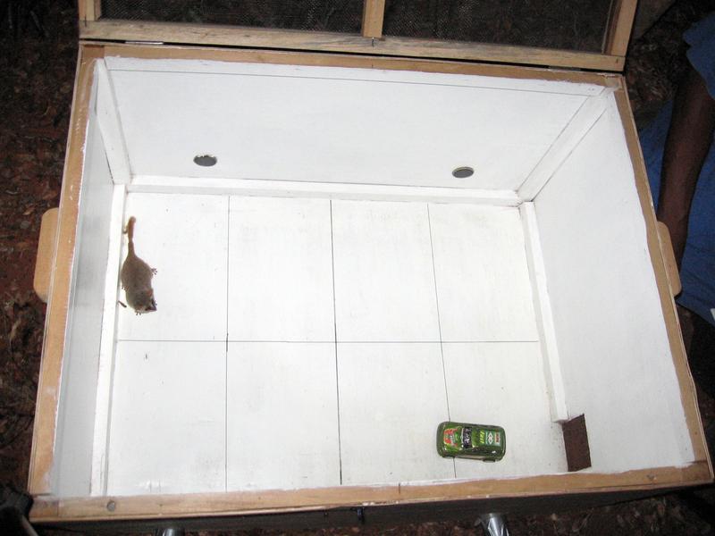 Verhaltensexperiment mit Mausmakis: Ältere Männchen gehen mutiger auf neue Objekte zu als jüngere. Quelle: Foto: Melanie Dammhahn (idw)