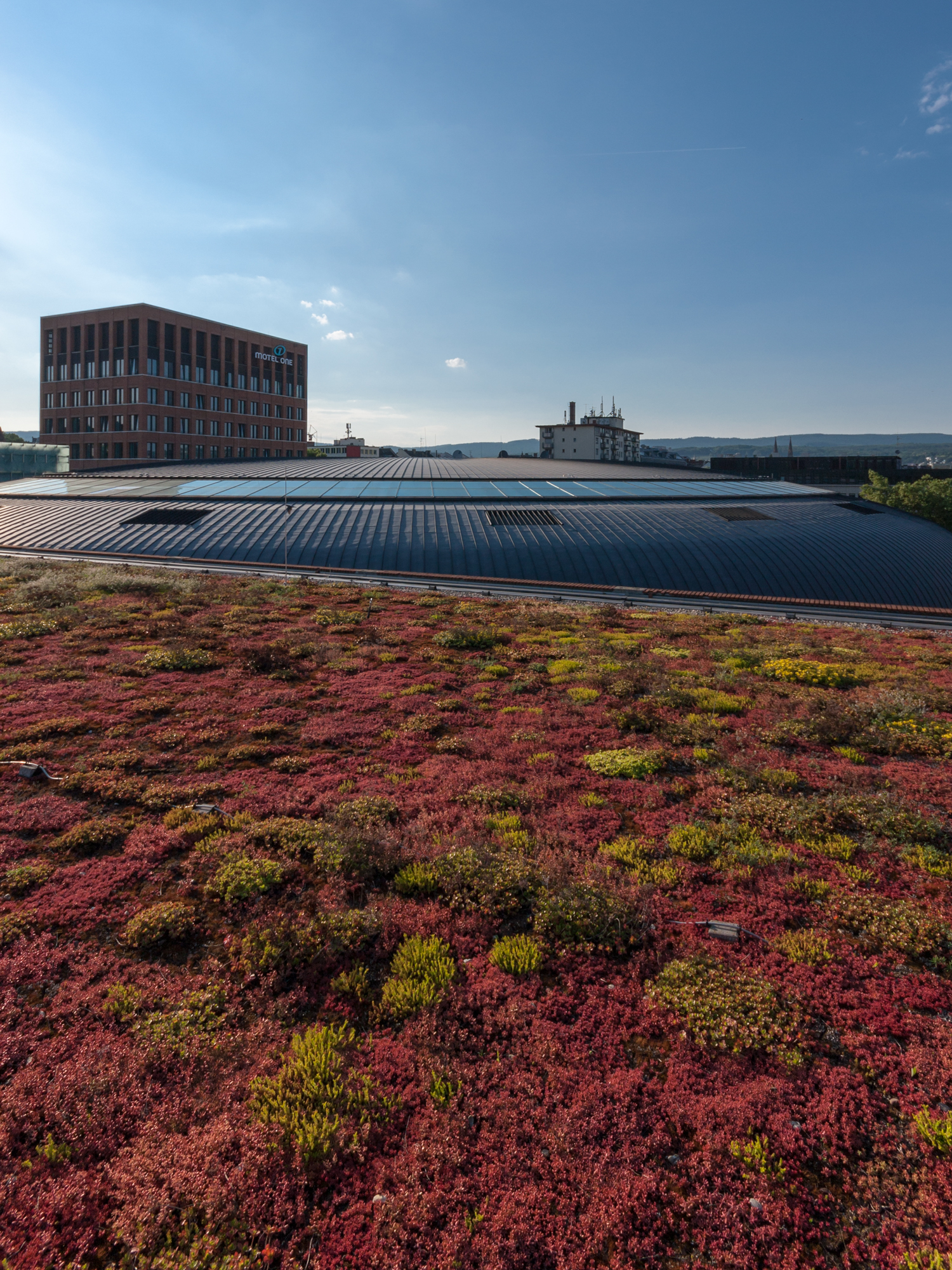 Ein extensiv begrüntes Parkhausdach