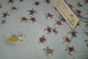 Geschlüpfte Schildkröten auf dem Weg zum Meer. Bild: pixelio/korneloni