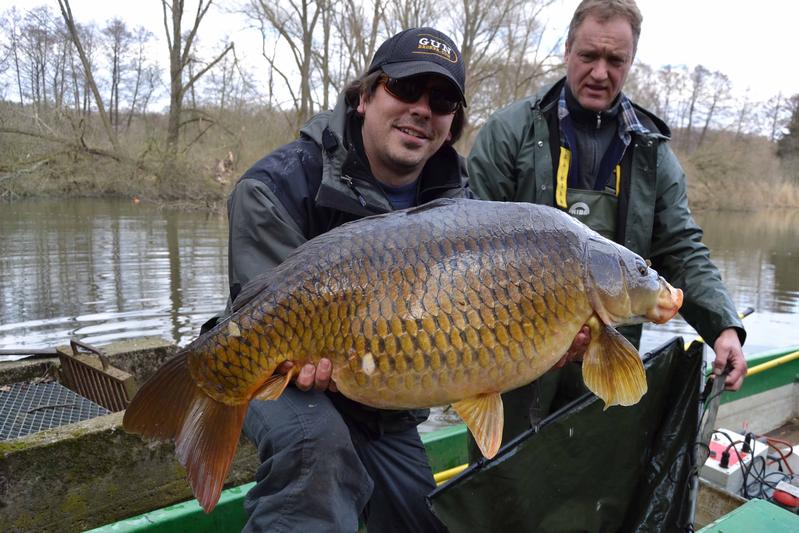 Schuppenkarpfen haben viele Schuppen und sind der ursprünglichen Wildform ähnlicher. Dieser ging IGB-Mitarbeitern ins Netz. Quelle: (Foto: IGB/Besatzfisch) (idw)