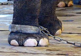 Im Zirkus verbringen Elefanten einen Großteil ihre Lebens an der Kette. Bild: VIER PFOTEN