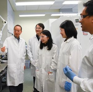 Hanwu Lei (links) mit Team: Plastikmüll wird zum Flugzeug-Sprit.