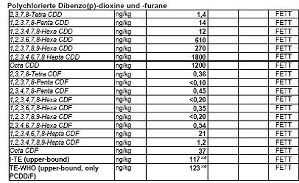 Kongenerenmuster der aktuellen Dioxinfunde in einer Futterfett-Probe aus einem Tank der Firma Lübbe. Grafik: foodwatch