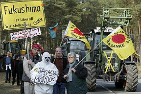 Am Tag der Reaktorkatastrophe von Fukushima (Japan) protestierten 500 Wendländer am und auf dem Gelände des geplanten Endlagers in Gorleben. Unterstützt wurden die Demonstranten von rund 30 Treckern. Die AKW-Gegner überwanden Sperrzäune und besetzten vorübergehend Gelände und Gebäude. Bild: Andreas Conradt / PubliXviewinG
