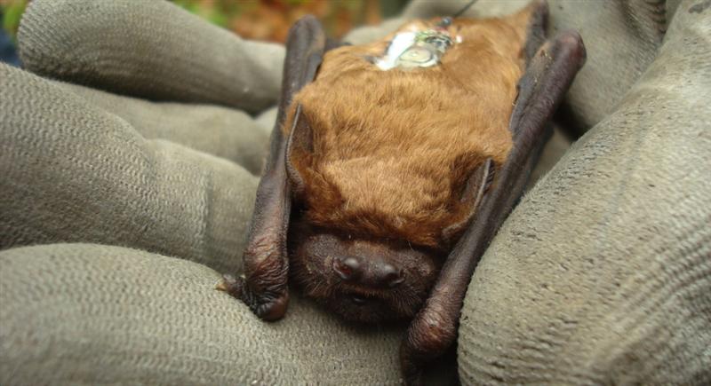 Der Mini-Sender auf dem Rücken der Tiere verrät den Forschern die Position der Tiere. Bild: MPI f. Ornithologie/ K. Safi (idw)