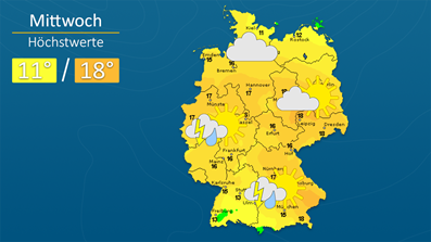 Deutschlandwetter: Mittwoch - Im Südwesten gewittrig