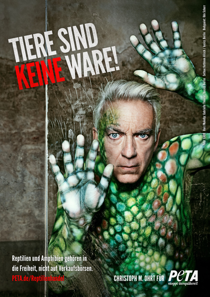 Christoph M. Ohrt setzt sich mit PETA für Reptilien ein. Bild: "obs/PETA Deutschland e.V./GABO"