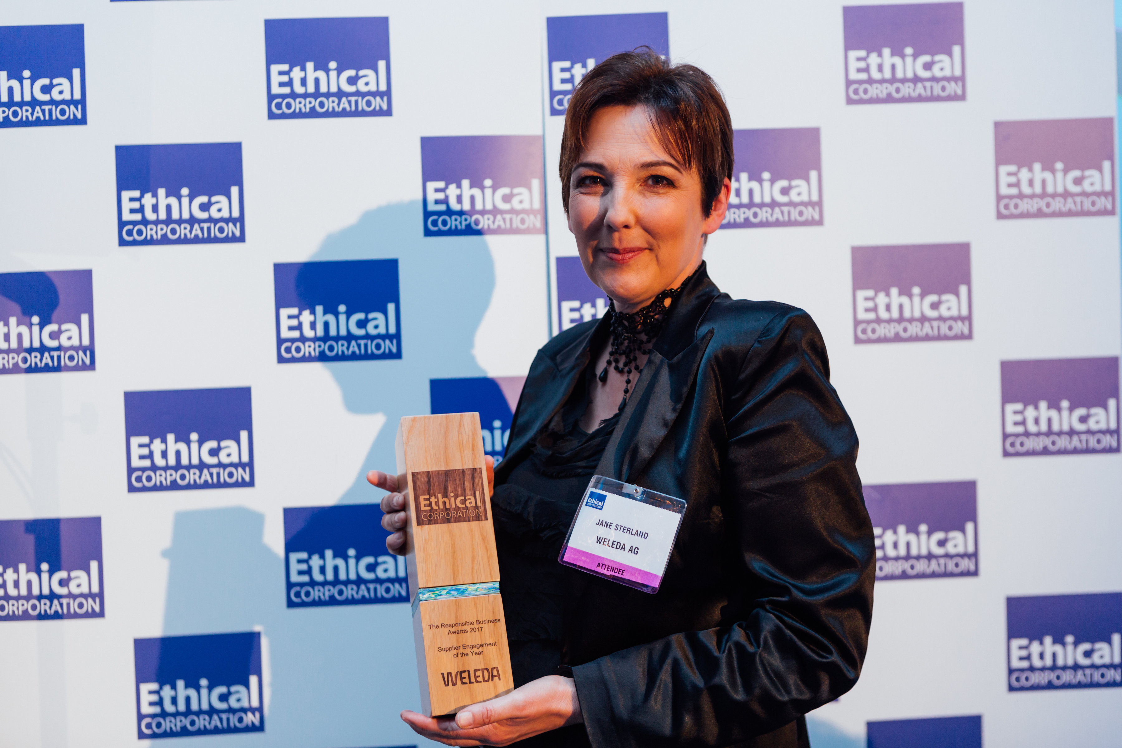 Jayn Sterland, Managing Director Weleda UK, nimmt den Responsible Business Award in London entgegen. Bild: "obs/Weleda AG/Responsible Business Award"