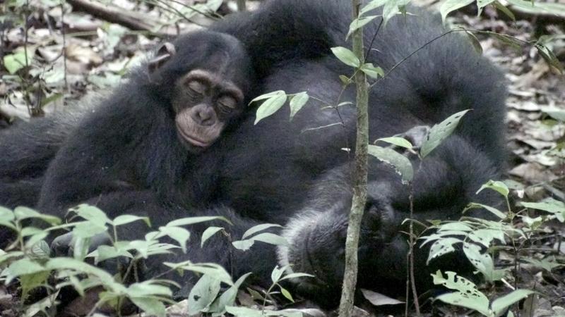 Der Schimpanse Freddy mit seinem Adoptivsohn. Quelle: Tobias Deschner, Max-Planck-Institut für evolutionäre Anthropologie (idw)