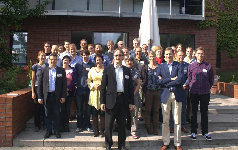 IZW-Direktor Heribert Hofer (li. vorn) und Zoo-Direktor Andreas Knieriem mit ihrem Team. Quelle: Foto: IZW/Steven Seet (idw)