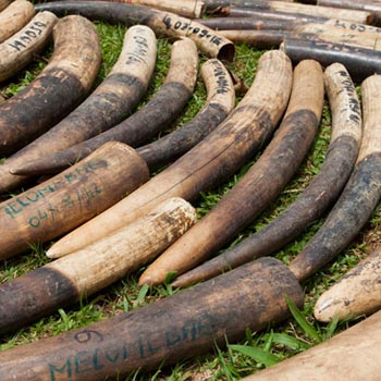 Konfisziertes Elfenbein. Bild WWF-Canon / Mike Goldwater