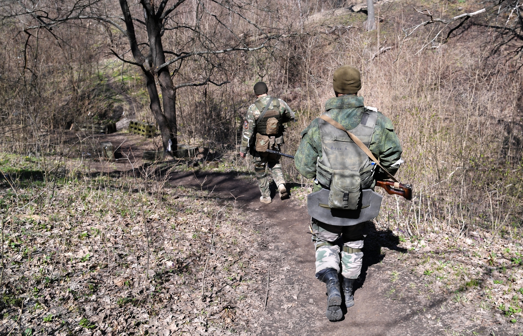 Auf dem Bild: Angehörige der Volksmiliz der Volksrepublik Lugansk in einem Wald in der Nähe der Ortschaft Nowotoschkowski, 7. April 2022. Bild: WIKTOR ANTONJUK / Sputnik