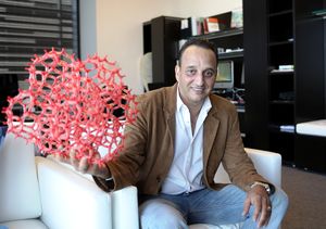Mohamed Eddaoudi mit dem Modell eines MOF-Kristalls.