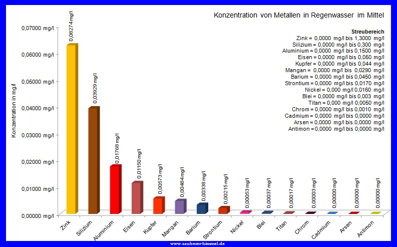 Konzentration von Metallen in Regenwasser im Mittel Quelle: http://www.sauberer-himmel.de/