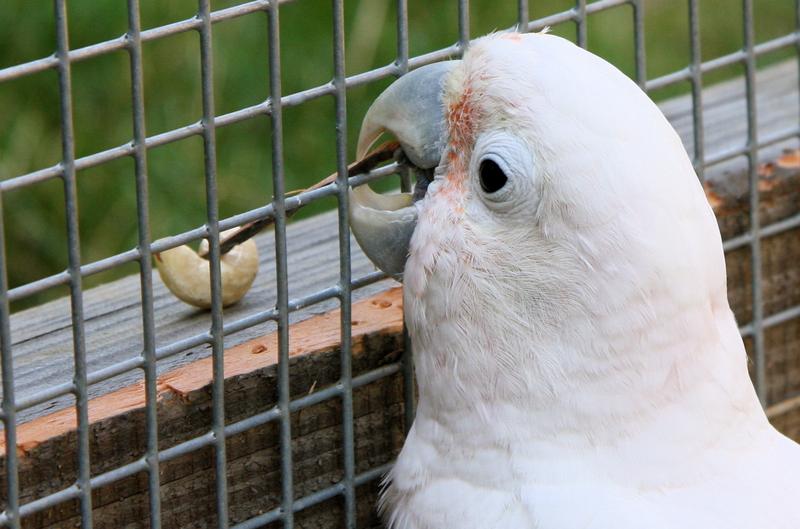 Der Kakadu Figaro baut sich sein Werkzeug selbst, um an die Nuss zu gelangen. Quelle: Foto: Alice Auersperg (idw)