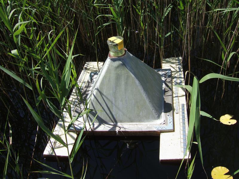 Zum Einfangen der schlüpfenden Zuckmücken nutzen die Wissenschaftler sogenannte Emergenz-Fallen. Die Quelle: Foto: IGB (idw)