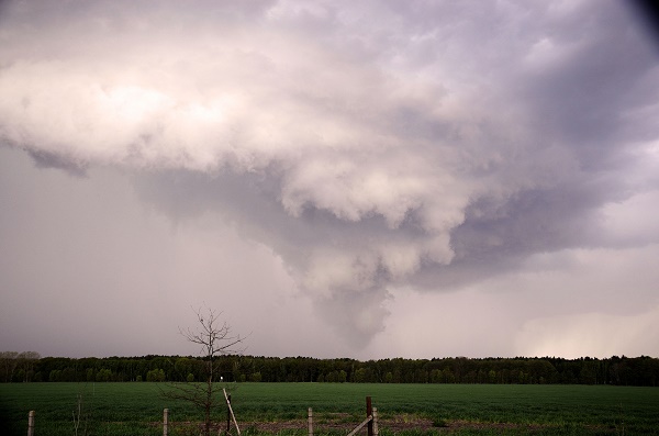 Tornadosichtung am 5. Mai 2015 auf der Straße von Dömitz nach Neu-Kaliß (Mecklenburg-Vorpommern). Bild: Rüdiger Manig (DWD)