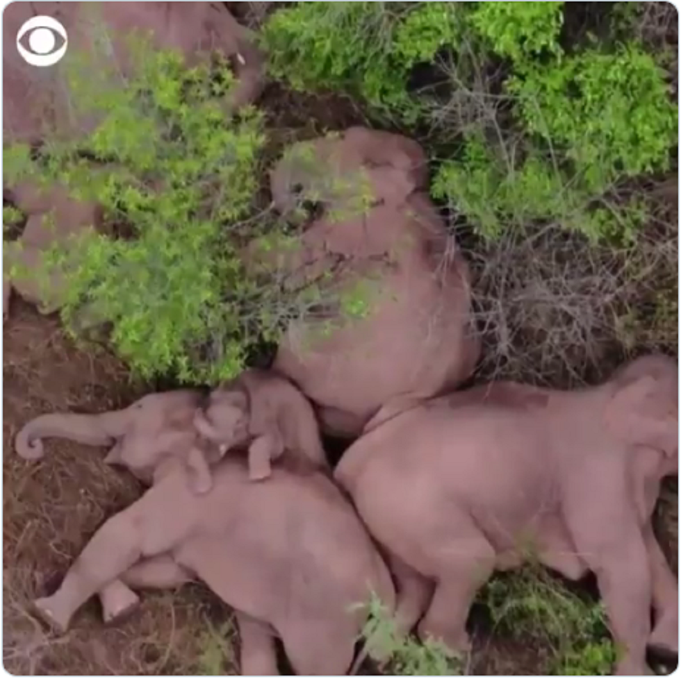Wandernde Elefanten gönnen sich eine Ruhepause