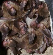 Eine Kolonie weiblicher Bechsteinfledermäuse in ihrem Tagesquartier, einem Fledermauskasten in einem Wald bei Würzburg, Deutschland. Foto: Gerald Kerth / Das Foto darf unter Nennung des Namens des Bildautors zu redaktionellen Zwecken kostenlos genutzt werden.